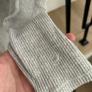 Good condition, I find that this style of fabric is very light and easily pulls. See photos for details.