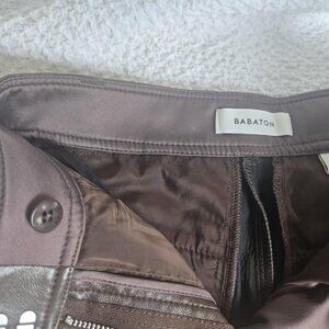 Aritzia Babaton brand new vegan leather mid-rise flared pants with front slash pockets, back welt pockets and a slim fit.