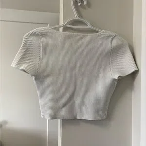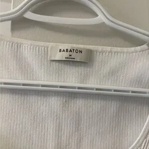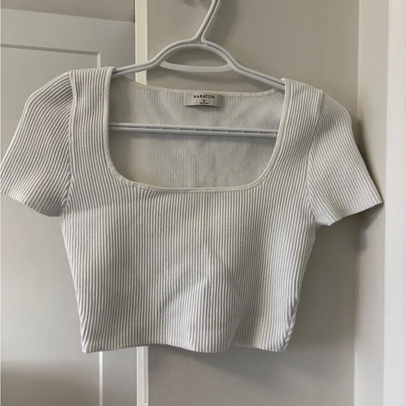 Stylish Babaton crop top with ribbed texture. Features a square neckline. Ideal for versatile styling.