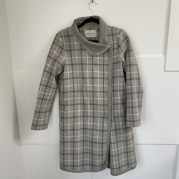 Beautiful long Babaton Wool Coat Off Center zip Pockets Model 5 9’