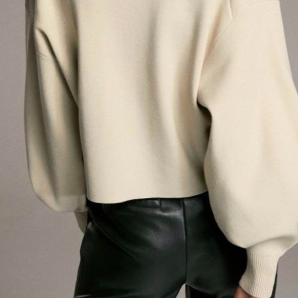 Deep V? Check. Big sleeves? Check. This is a cropped sweater with a deep V-neck and voluminous sleeves. It's made with LENZING™ ECOVERO™ — a wood-based fibre produced through a more sustainable process.