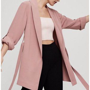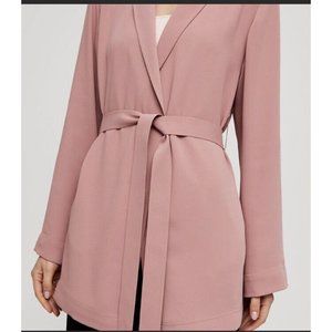 Babaton XS Blue White Pinstripe Kahlo Tie Robe Jacket Coat Aritzia Blazer Pocket