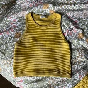 Chic yellow ribbed knit tank by Babaton. Ideal for casual outings. ***Model is wearing orange, this top is the same style but in YELLOW**** #oldmoney