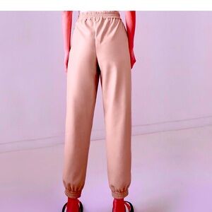The Babaton Zedel Pant is a high-rise, ankle-length jogger made from vegan leather. It features an elastic waistband and cuffs, side-slit pockets, and is known for its buttery soft feel. The Zedel Pant is considered an elevated take on the classic jogger style. Dress up or down, very versatile!