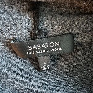 Babaton cardigan - black with dark grey interior. Meant to roll up sleeves for two tone look. Fine merino wool