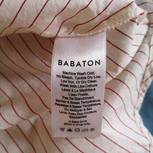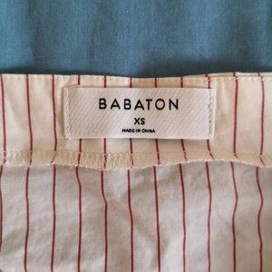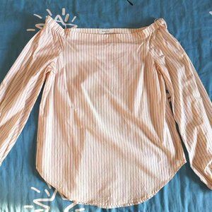 White and red off-shoulder blouse from Babaton (Aritzia), balloon long sleeves. 100% cotton. Size XS and lose fit.