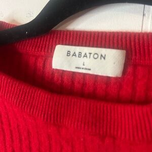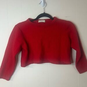 Babaton, size L, wool blend cherry red long sleeve cropped sweater