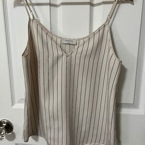 White spaghetti strap tank with black stripes. Straps are adjustable. In great condition.