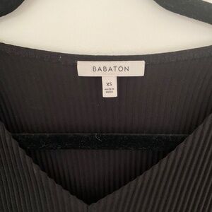 Ribbed. Really flattering. Good for work or weekend. Modest neckline so not too much cleavage.