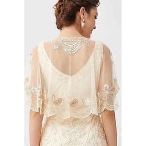 Babeyond 1920s Shawl Wraps Beaded Evening Cape Bridal Shawl Cover Up (Beige)