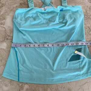 In very good preowned condition matching ladies lightweight Babolat Core Long Tennis pleated Skirt / Skort and matching tank top. Tank top has cross over straps and adjustable built in bra.
