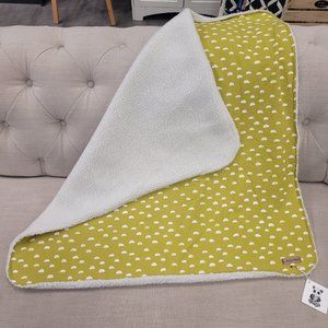 Gender neutral baby blanket handmade by The Paisley Pandas. Measuring 40" x 35" this new blanket is great to tuck around baby in the car or stroller. Fuzzy backing keeps baby cozy and the mustard/green neutral print is fresh.