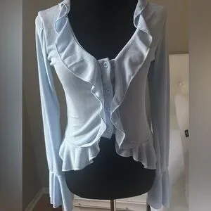 Baby Blue Ruffle Button-Up Top - SIZE M