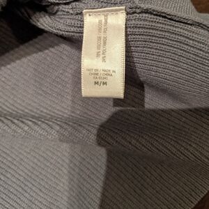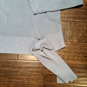 Nice knit turtleneck in a light blue color with a side tie. Size medium and in excellent condition. The sleeves are 3/4, maybe slightly longer!