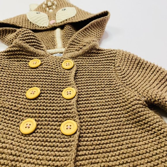 Baby Boden Knitted Deer Hooded Cardigan in Mocha Brown Size 6-12 months