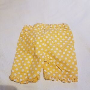 Baby Boden 3-6 months yellow polka dot shorts with heart pockets, ruffle leg trim, elastic waist & drawstring