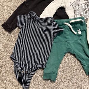 Adorable mixed-brand bundle featuring comfy everyday pieces in size 6–12 months. Includes tops, bottoms, and bodysuits perfect for all seasons.