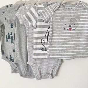 100% cotton except grey bodysuit 60% cotton, 40% polyester