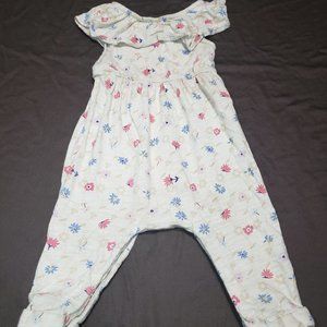 The Old Navy 6-12 Months sleeveless jumpsuit is made with 100% cotton and features button up pants for easy diaper changes. It has a cute floral pattern and ruffled collar for added flair!