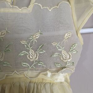 Baby Dress, Vintage Pale yelloe sheer floral embroidery.