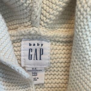 Adorable cream knit jacket with matching hat from Baby GAP. Perfect for keeping your little one cozy.