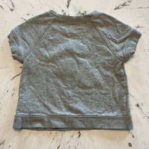 This Baby GAP Flamingo T-Shirt, size 2T features a playful hot pink flamingo graphic on a heather gray background, offering a fun and vibrant look. Made from a comfortable knit material, it boasts a classic crew neckline and short sleeves, perfect for casual wear.