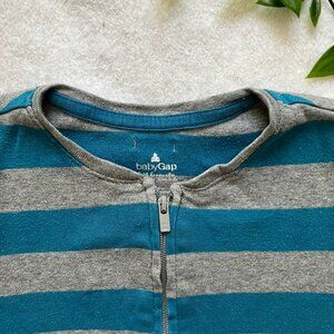 Baby GAP Romper 6-12M | Teal & Grey Striped Cotton Short Sleeve Zip-Up GUC