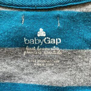 Baby GAP 6-12M, Cotton baby romper, Teal stripe romper, Infant zip-up outfit, GUC baby one-piece, Pre-loved baby clothes, Soft cotton baby wear, Everyday baby outfit, GAP baby essential, Baby GAP cotton romper, Unisex baby romper, Cozy baby clothes, Affordable infant wear, Baby romper with zipper, Baby GAP essentials 6-12M, Easy change romper