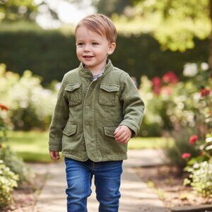 Baby Gap Cotton Stretch lightweight Jacket Two Flap Snap pockets - Two Button pockets Zipper and Snap Closure Walden Green Baby Size 18-24 Months Jacket has some light fading