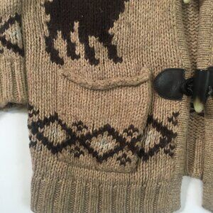 Baby Gap Button Up Knit Sweater Pockets Hooded Reindeer Moose Sz 3 Unisex Beige