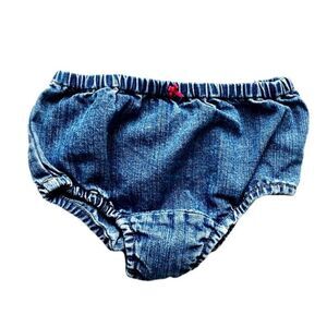 Aren't these adorable!!!! Nice thick medium wash denim with a cute token little pink bow. Wear them alone or under a cute dress! They're a super sweet alternative to the cartwheel shorts. Get these in your bundle mama! EUC