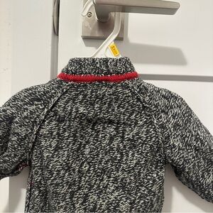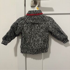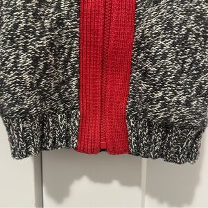 Heather gray with red accents knit zip up sweater