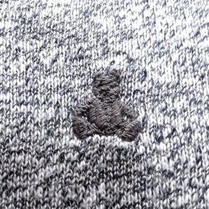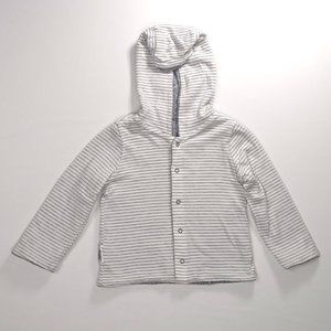 Baby Gap reversable snap front gray and white hoodie. It has ears, and a small embroidered bear on the chest. The reverse side is White with gray stripes.
