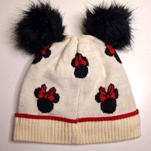 Baby Gap x Disney Cream and Black Pom Pom Minnie Mouse Beanie