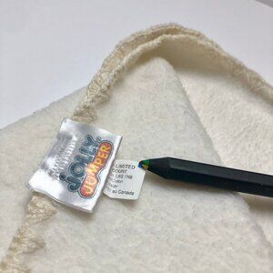 couverture Jolly Jumper beige, faite au Canada, avec broderie subtile d’insectes. Probablement vintage.