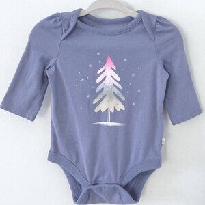 1x Gap long sleeve bodysuit - blue with pink & white tree - good condition, light wash wear, small stain on front by leg hole.