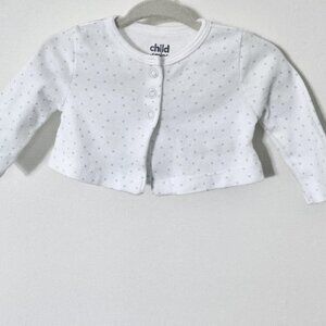 1 x Child of Mine by Carter's cropped cardigan - white with blue polka dots 100% cotton.