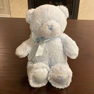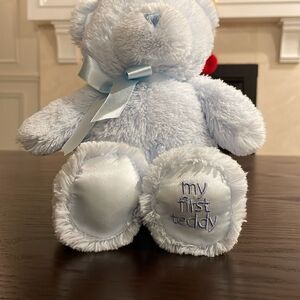 Baby Gund My First Teddy Blue/Bleu 4043950 Excellent Condition 11” long with bow