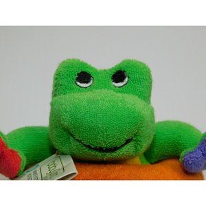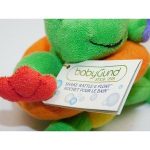 : This Very hard to find Baby Gund Shake, Rattle & Float 5747 Green Frog Floater Bath Toy Lovey is in NEW with Tag. Made of Terry cloth material with rattle inside - item is machine washable. Measures 6" from top of head to bottom