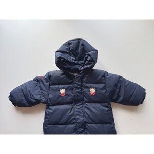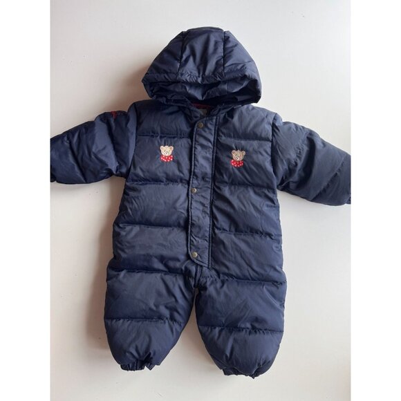 Baby JACADI Navy Funny Bear Embroidered Nylon Down Filled Snowsuit, Size 18M