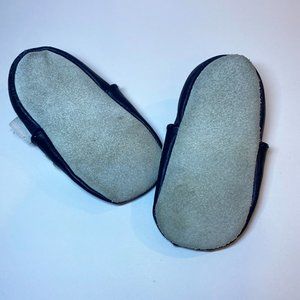 Baby Leather Slippers Floral Navy Blue & Pink 0-6 months
