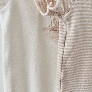 All 100% cotton, except grey leggings (60% cotton, 40% polyester)