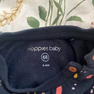 Size 4-6 months from Noppies baby. Navy blue with coloured print. Cotton with some stretch. Like new.