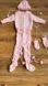 Adorable pink knitted one piece set for babies, featuring a matching hat and mittens. Perfect for keeping your little one cozy and stylish. Excellent condition