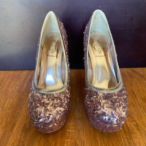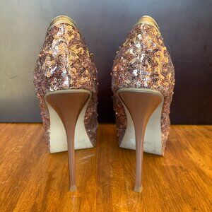 Baby Phat Rose Gold Sequin Round Toe Stiletto Platform Pumps