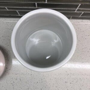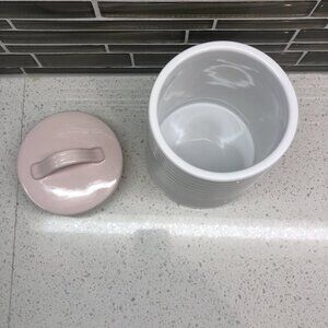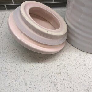 Baby Pink, Yellow and White Stoneware Jars with Sealed Lids – Set of 2