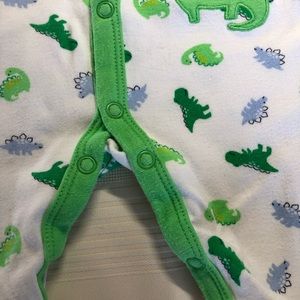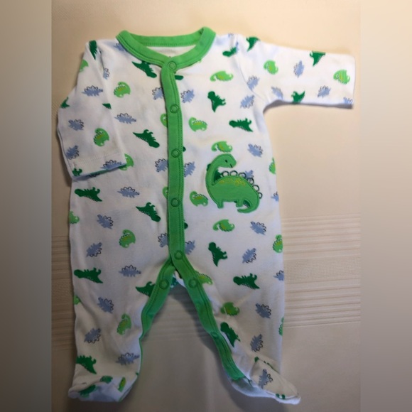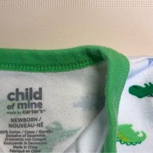The Child of Mine NB footed sleeper you described features an alligator print and a comical alligator embroidered on the side. It is designed as a one-piece garment for newborn babies, with covered feet to keep them warm. The sleeper is made of a soft and comfortable cotton fabric, providing a cozy and cozy sleeping experience for the baby. The alligator print adds a playful and adorable touch to the sleeper, making it visually appealing.