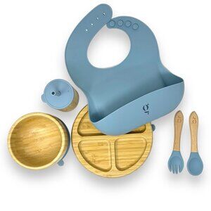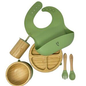 It Also includes BPA free Silicone Bib & Bamboo Cup Making it a complete Weaning Set