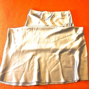 Baby blue satiny maxi skirt made in USA new with tags. Stretchy, soft, light and fluid satiny weave made of 97% polyester and 3% spandex, unlined, slightly flared maxi-length design, covered elastic waistband. Very elegant and chic, also versatile, it could be dressed up or down. Colour is accurate in the stock photos, mine are taken in artificial light. Marked size M medium, waist is 14.5 (it stretches up to 19’’) and the total length is 39’’. This item comes from a smoke free, pets friendly home. Recycled bags/box used when possible. Please, let me know if you'd like any additional info. Thanks for watching!