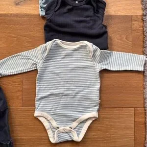 Baby gap joggers and three long sleeve body suits. Body suits only worn 1-2 times each, pants worn with each. No rips or stains.